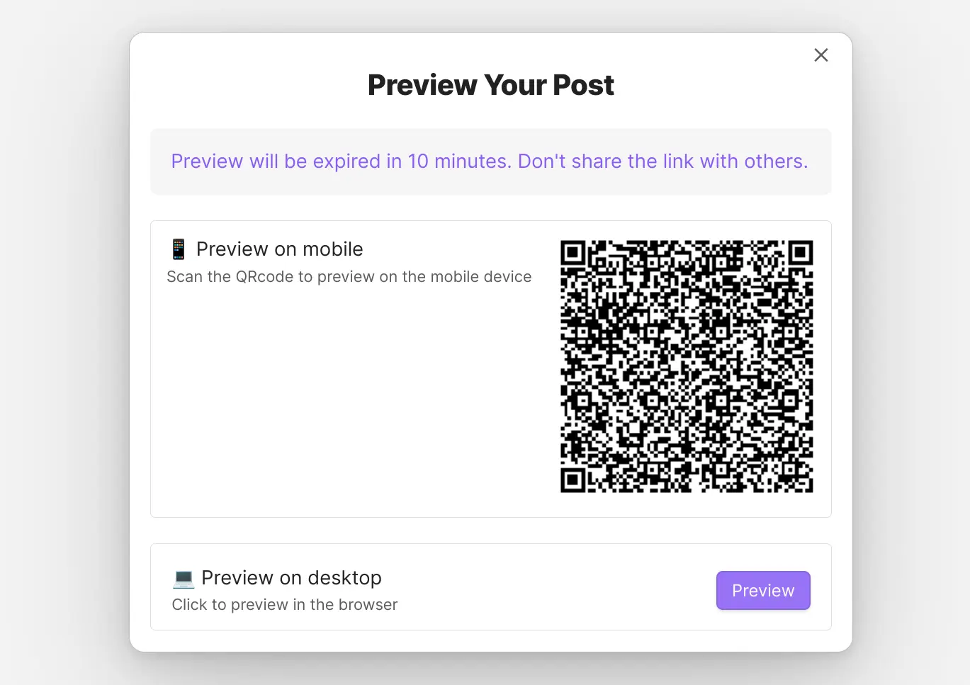 - 稍等片刻,Quaily 将会弹出一个预览窗口,显示一个二维码和一个预览按钮。